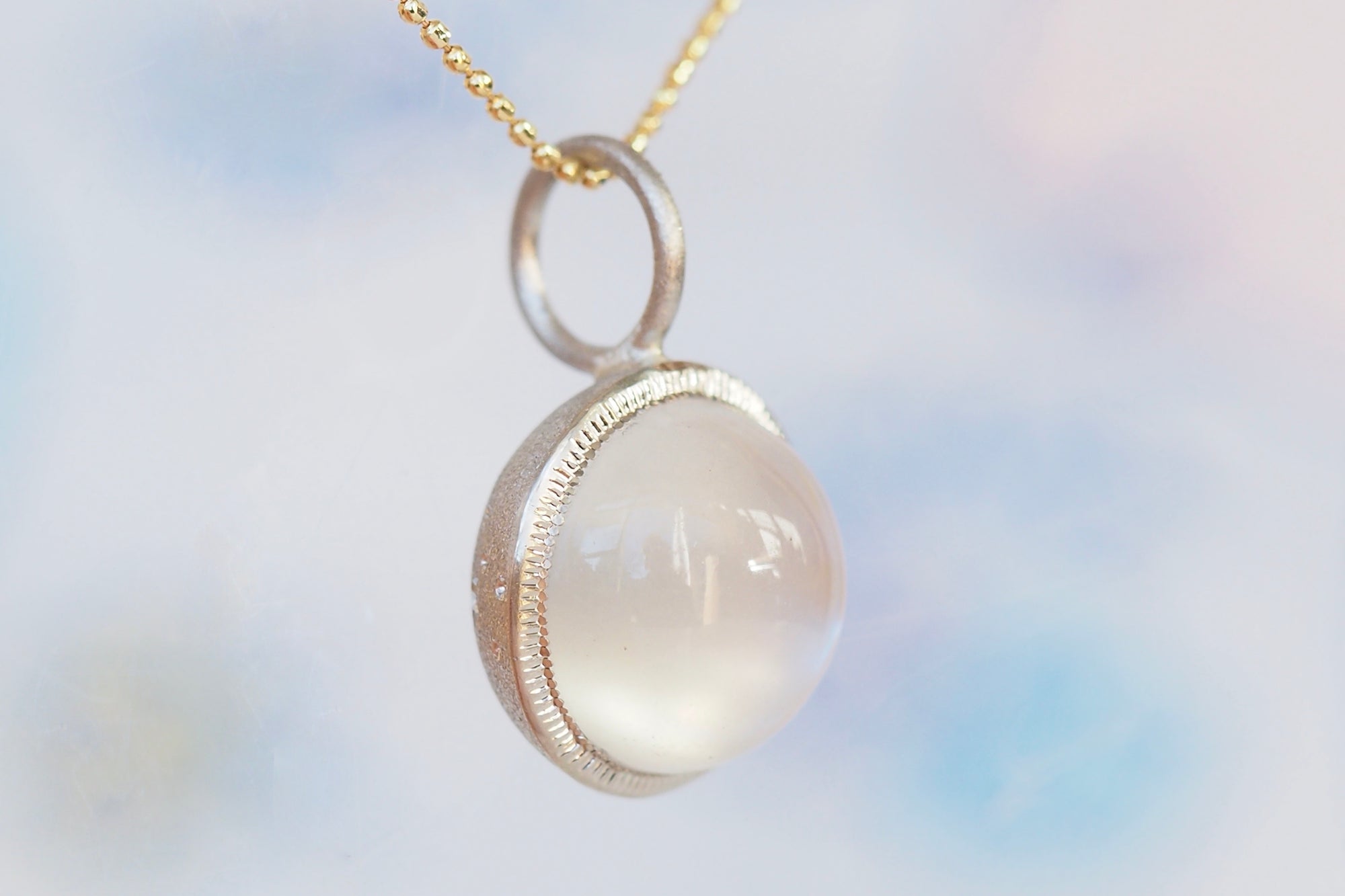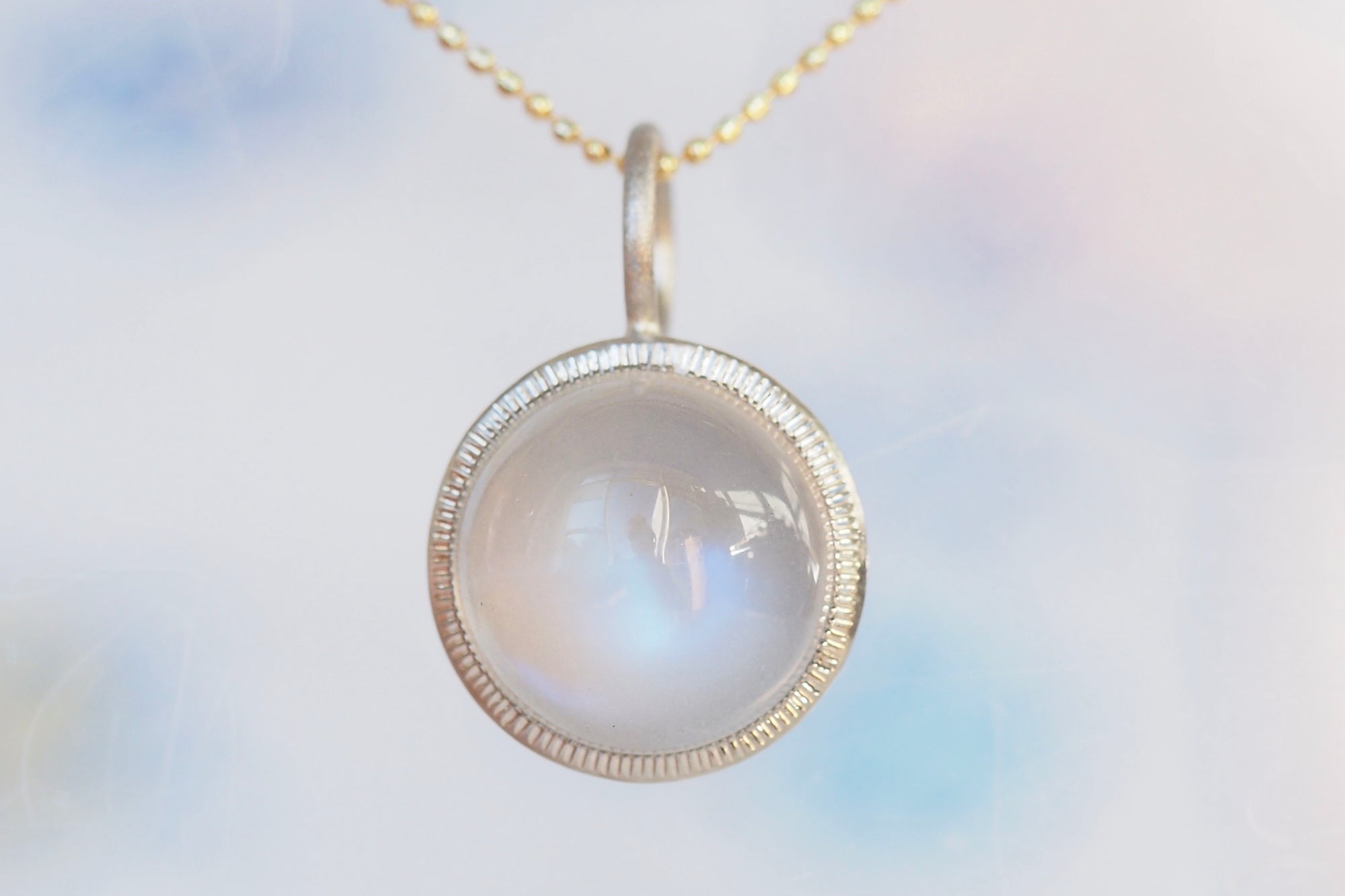 GP403 | 10mm Moonstone Galileo Pendant | 14K White