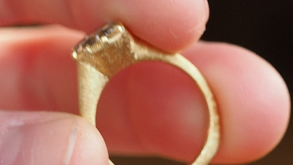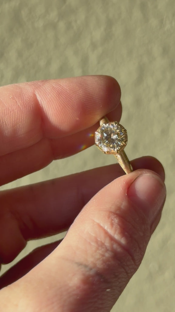 Center stone: 1.75ct champagne SI1 reclaimed diamond with florentine texture.